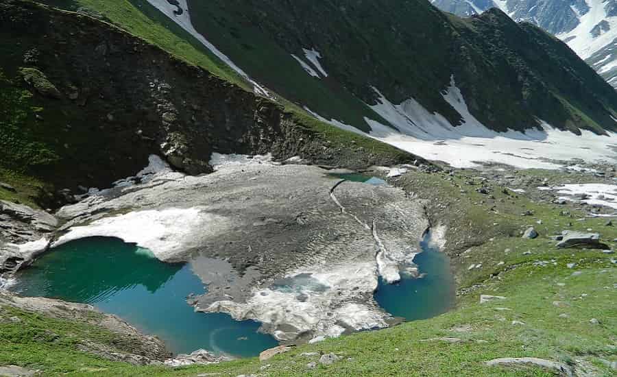 - Beas Kund:Summit/Lake (12,772 ft).The Highlight: The lake itself. The water is crystal clear (and freezing). You can see the glacier dripping directly into it.